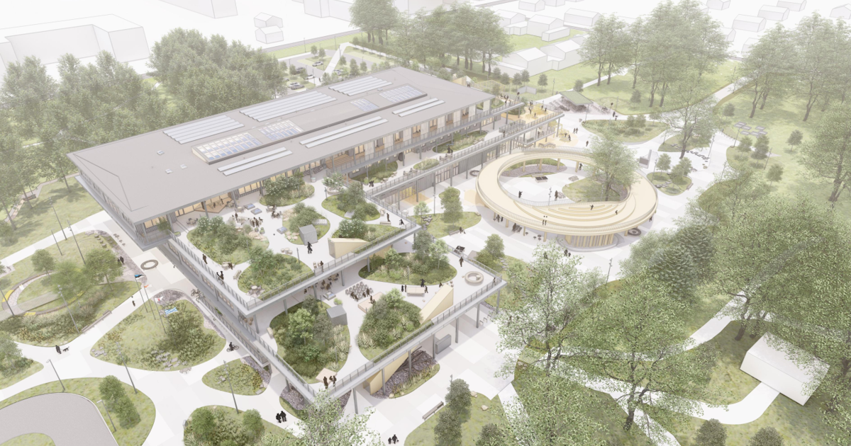 \[ \textsf{\textit{\footnotesize{Architectural visualization of the Educational center}}}\]