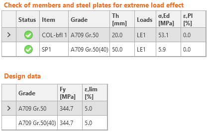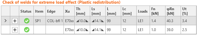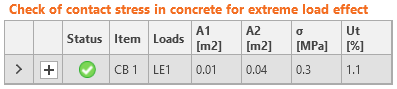 In addition, the results of welds and concrete block in compression are shown. Loading of these components is negligible and therefore also utilization.