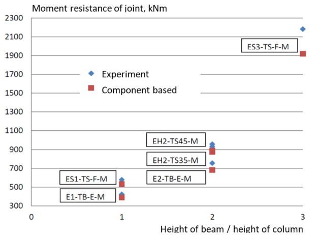 Fig.12.2.4 Validation of resistance of CBFEM on experiments from EQUALJOINTS project