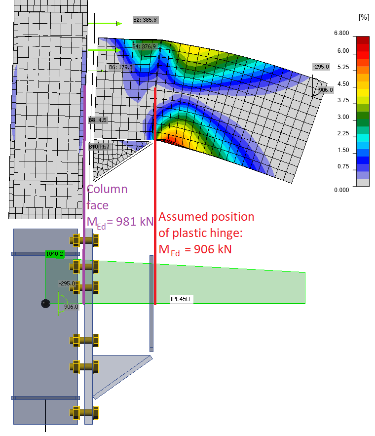 The governing failure mode by CBFEM is failure of bolts with yielding of plates, mainly end plate, column flange, and haunch. According to CBFEM, joints No. 4.2 and No. 264 are full-strength and joint No. 267 equal-strength. Column web panels are strong in all cases.