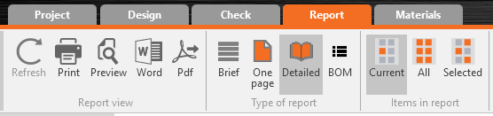Together with the new tabs, the Bill of Material (BOM) was united to one command in the ribbon. It can be found in the Type of report family.