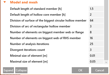 Due to the better results for the hollow cross-section members, a dedicated setup value for the mesh and division properties are created.