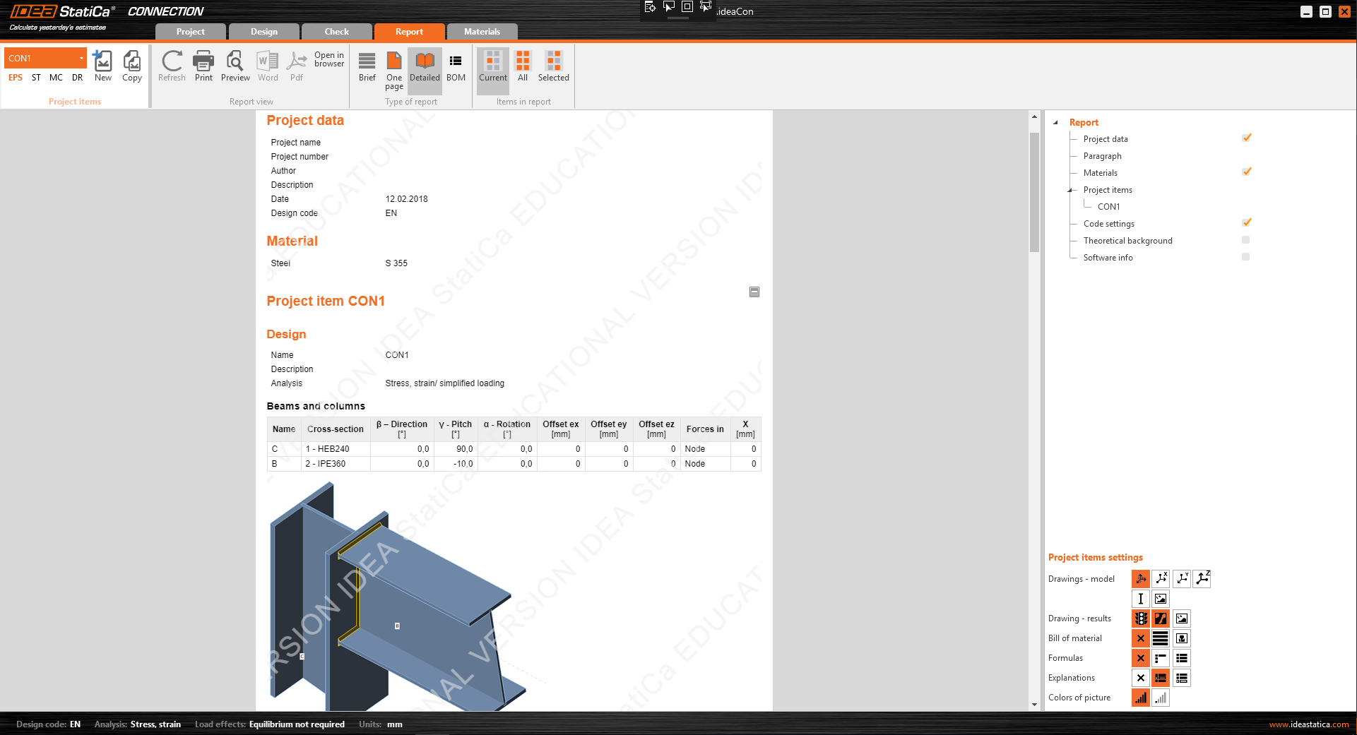 - We export it to IDEA StatiCa (geometry, cross-sections, load effects), design the connection and perform a code-check