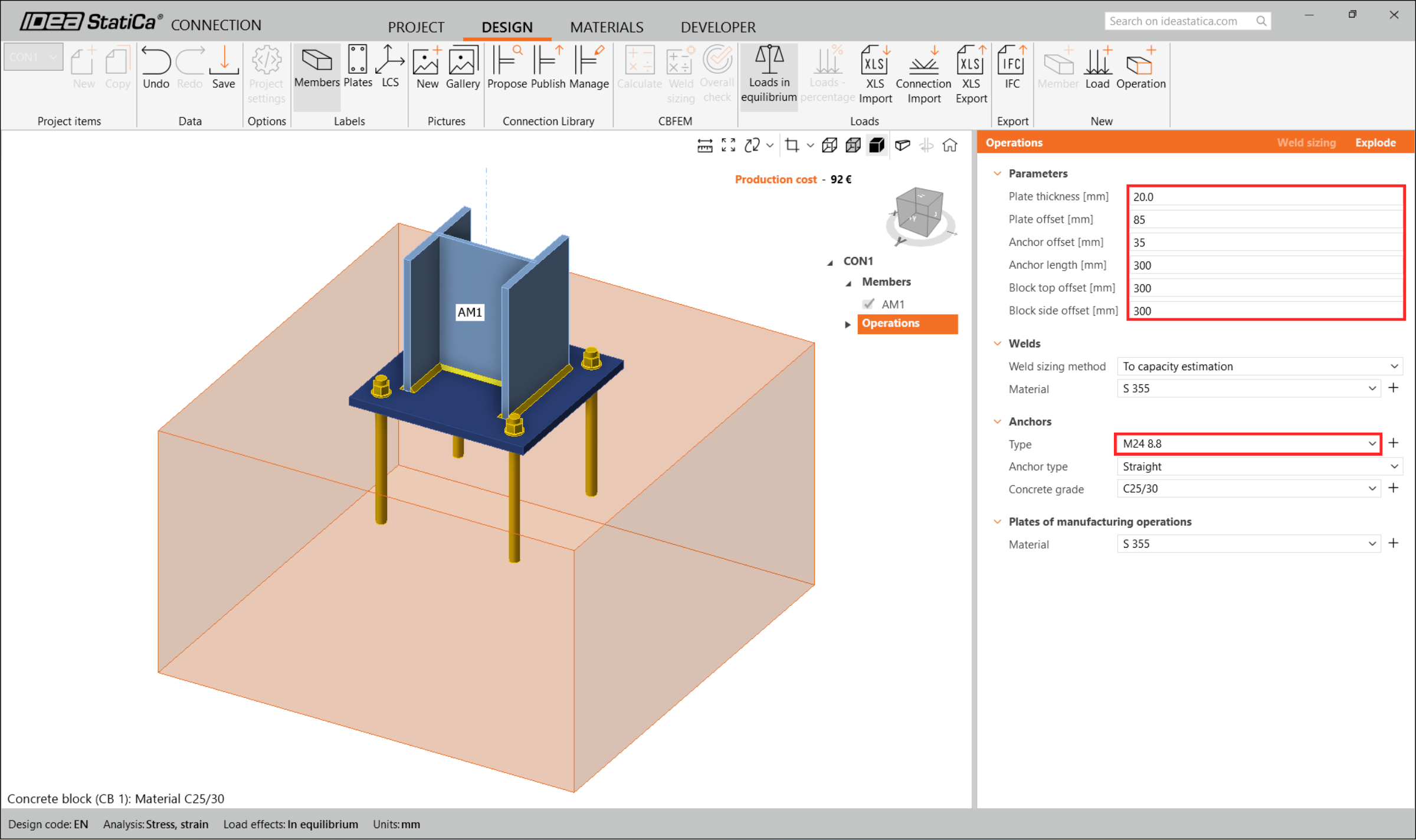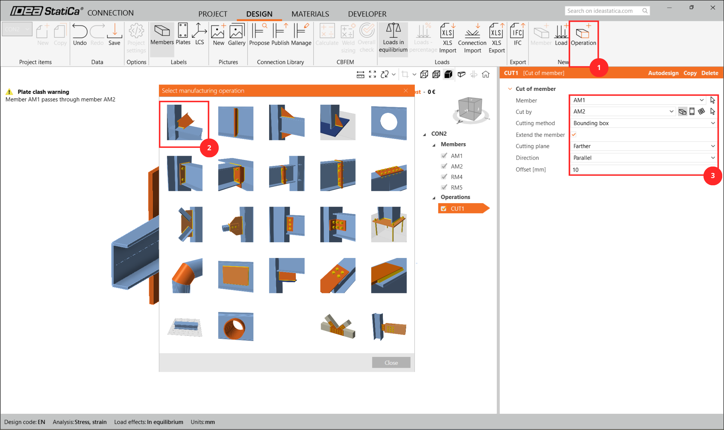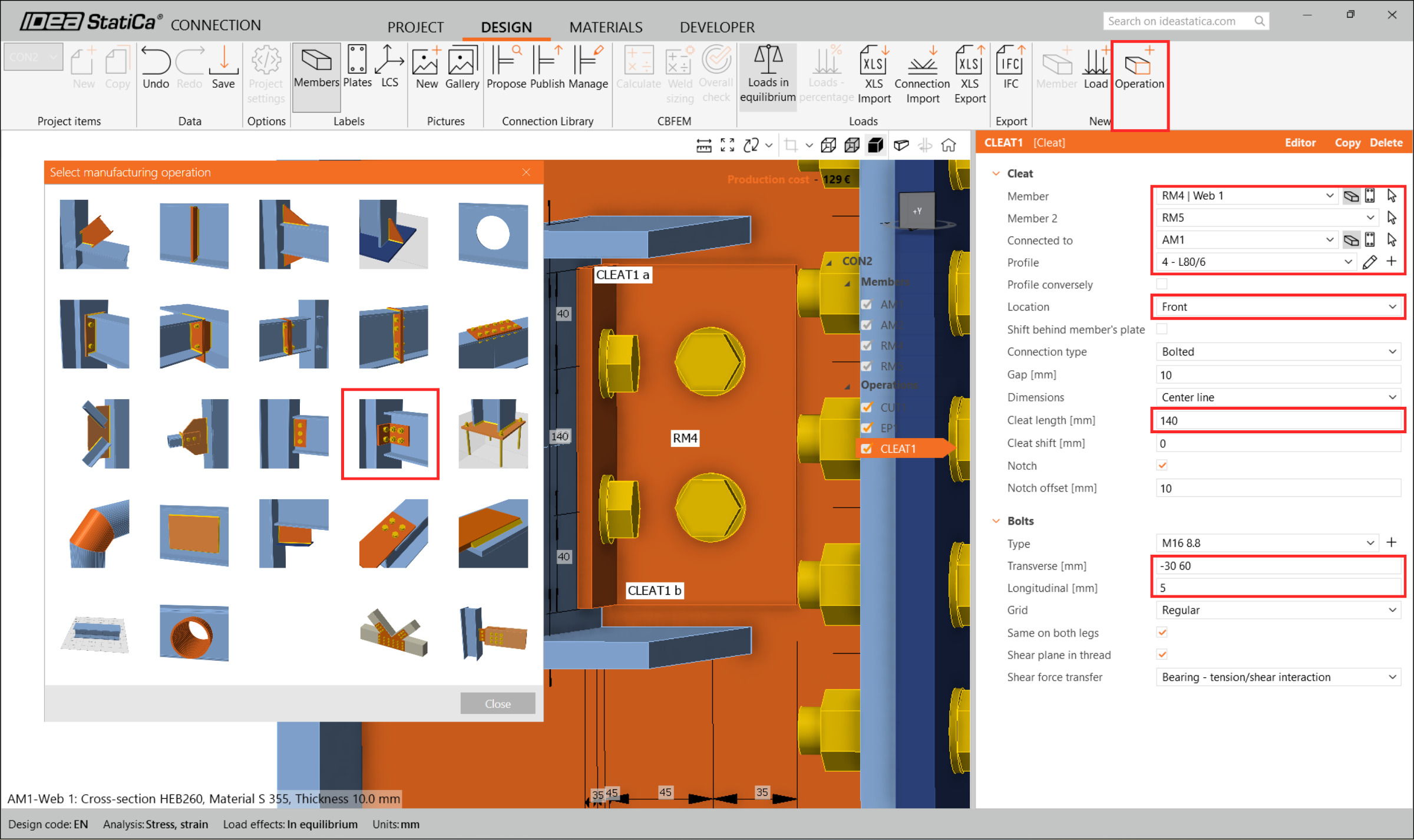Start with joint CON1 at the left column base. IDEA StatiCa Connection application module opens, and you can design the joint by selecting one of the predefined templates.