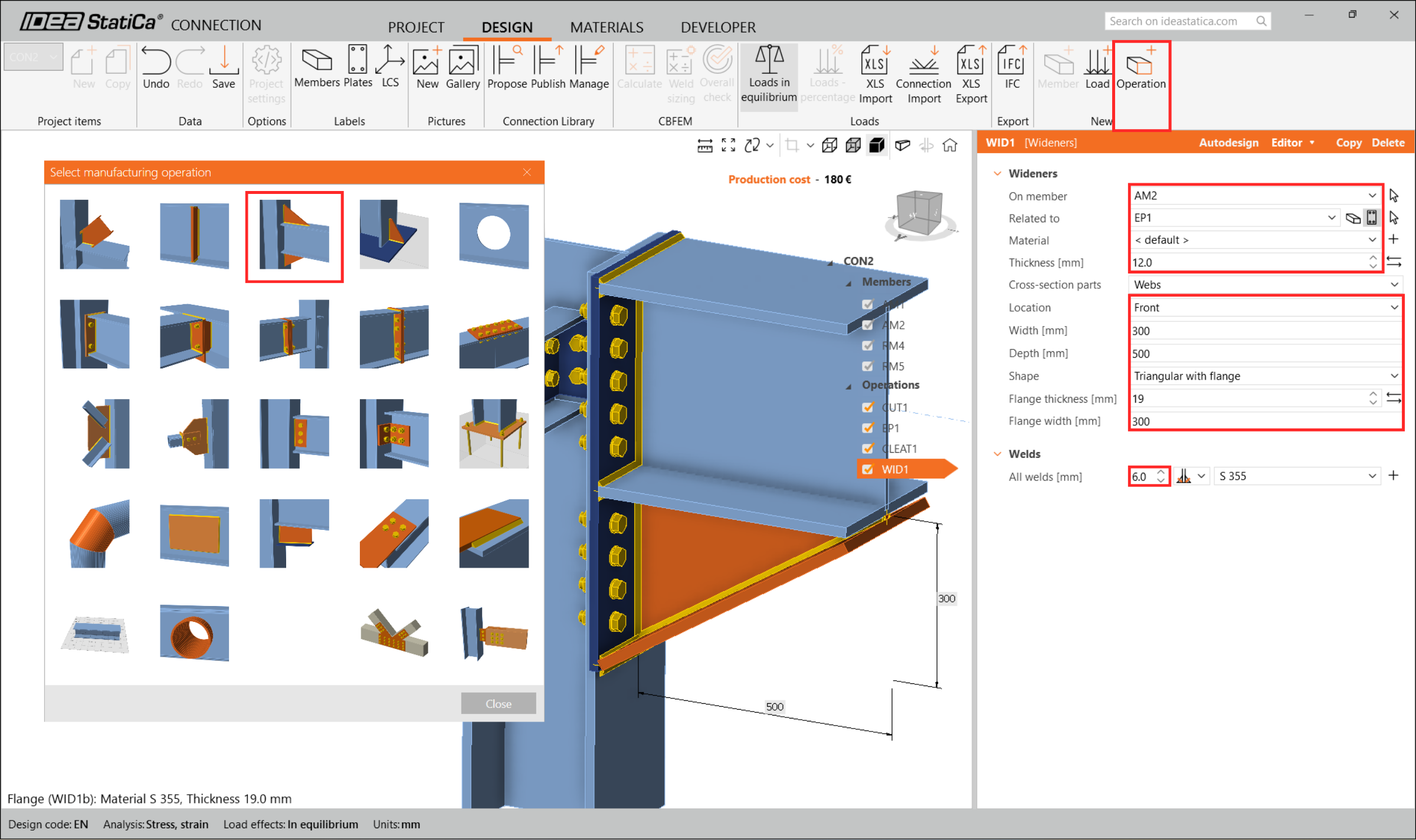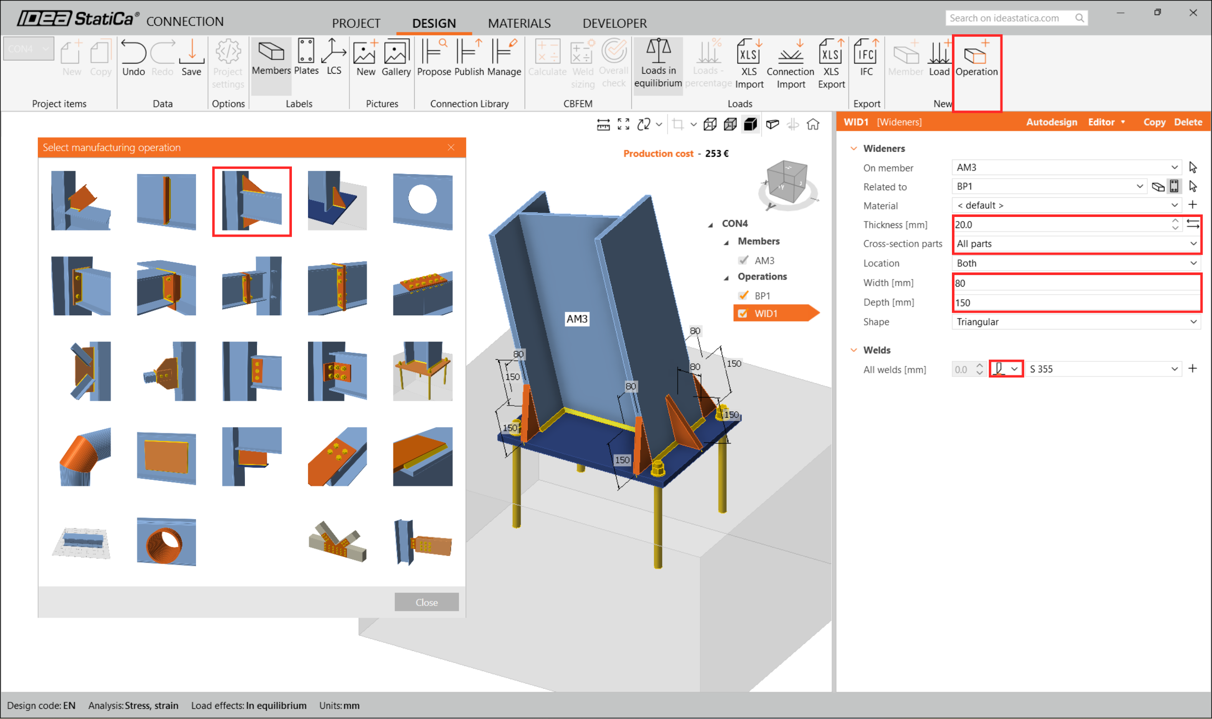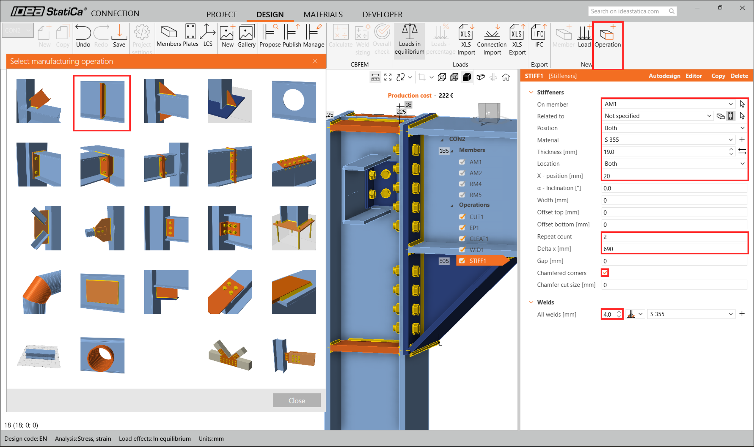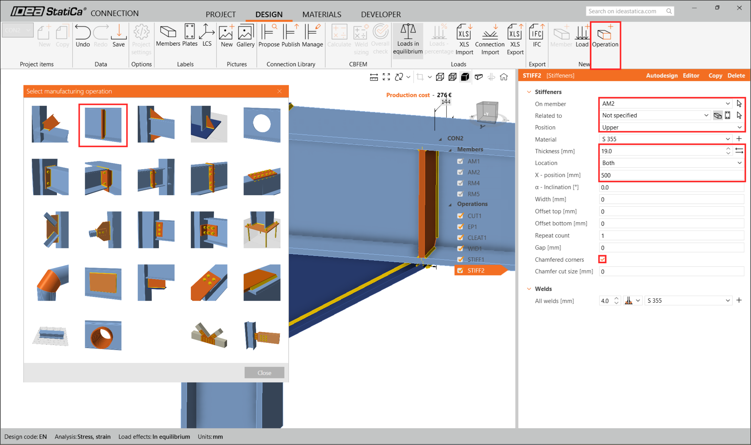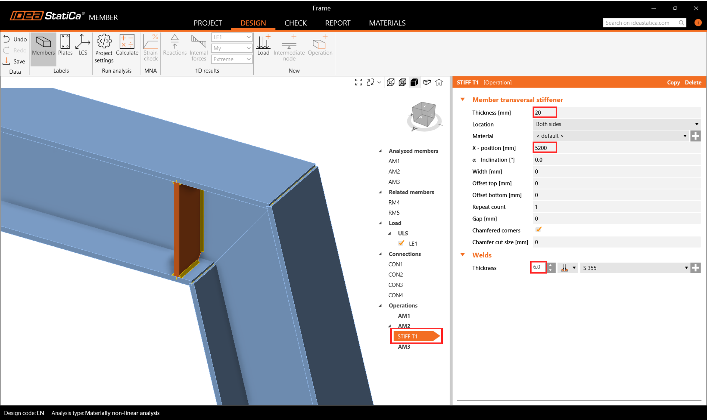 Then modify the stiffener parameters and add one more transversal stiffener to the same beam AM2 and another one to the column AM3 and set them in the right position.
