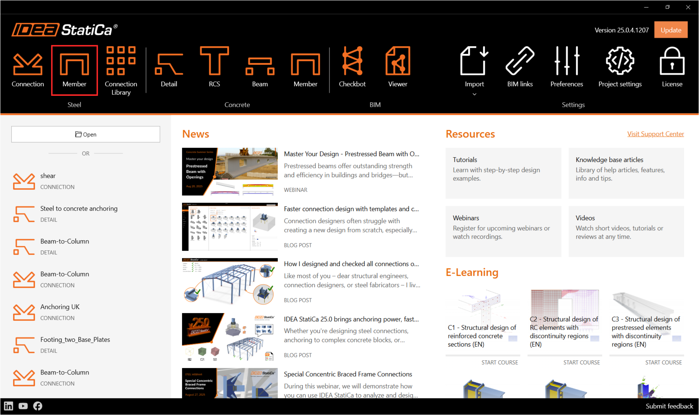 Start with launching IDEA StatiCa and select application Member (download the newest version).