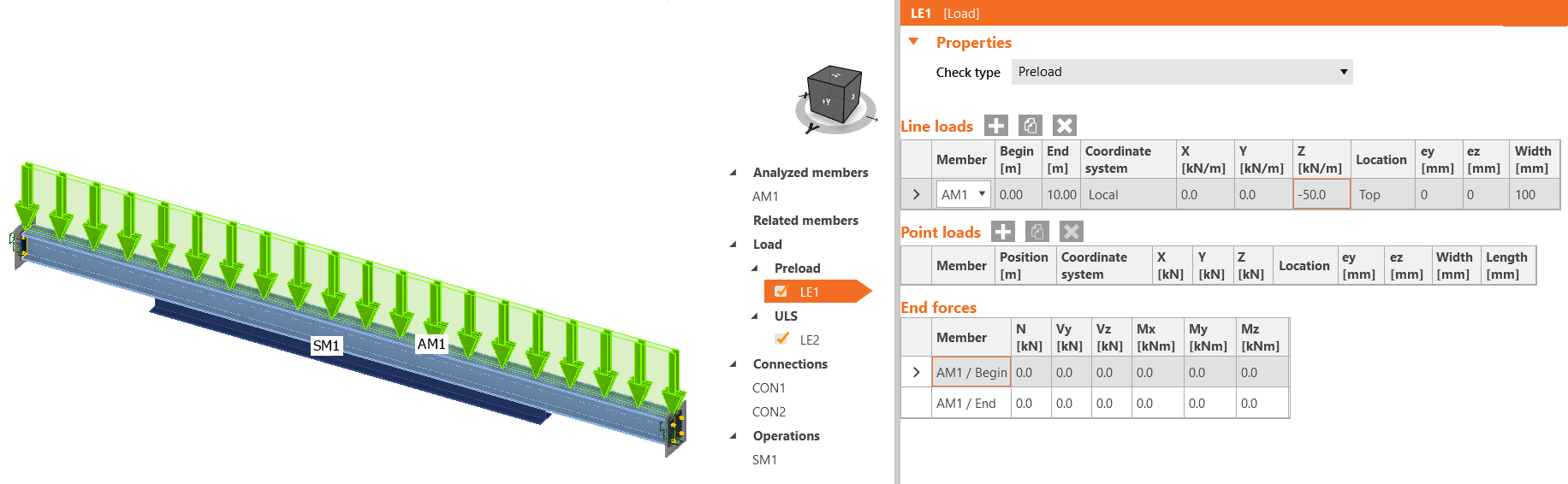 Define a new Check type of the pre-load to allow the software to introduce additional loading after the required ULS loading checks have been completed. Thanks to this, you can clearly see pass/fail results, including the, e.g., stress in the existing structure, and in the plates of the added strengthening.