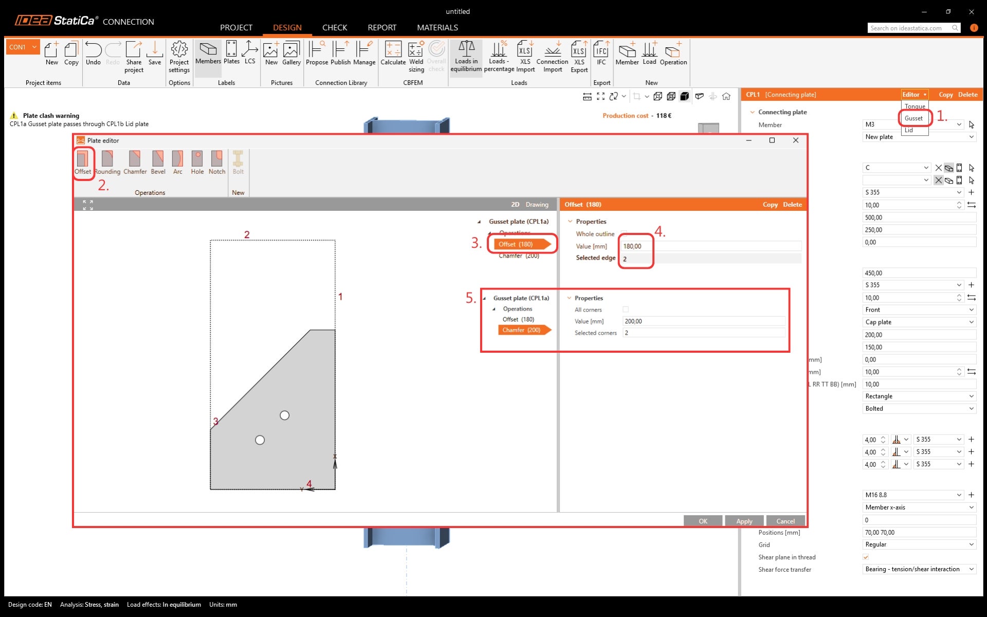 Edit the Gusset plate to a suitable shape in the Plate editor