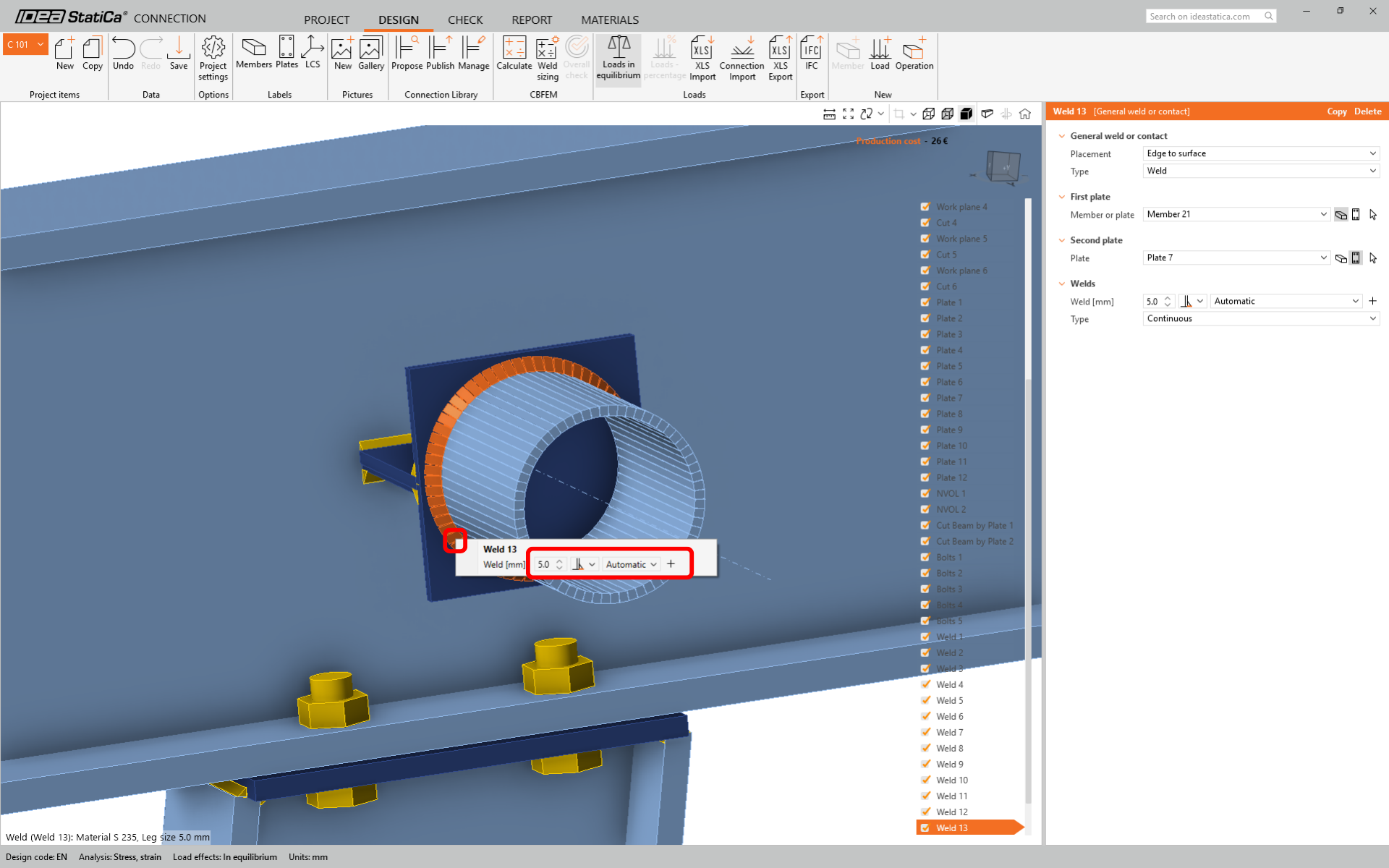 Once the code-check is finished in the Report tab you can create the report containing results and diagrams for your connection model.