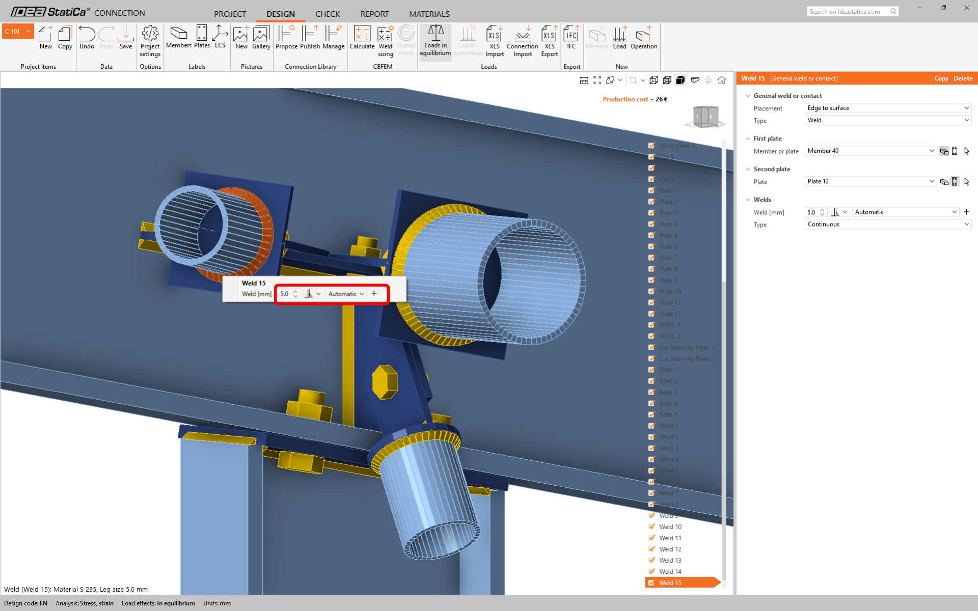For member Diag 3-3 change the size of the weld to 5 mm and the rear side orientation.
