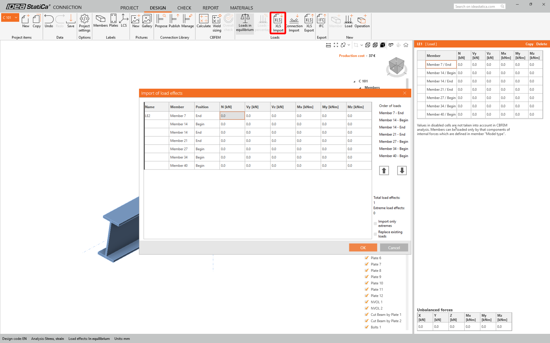 Another option is to do the Bulk import. It is faster, but note that the node and member numbering might be different, which would affect the correct XLS import of the load effects and the equilibrium in the joint.