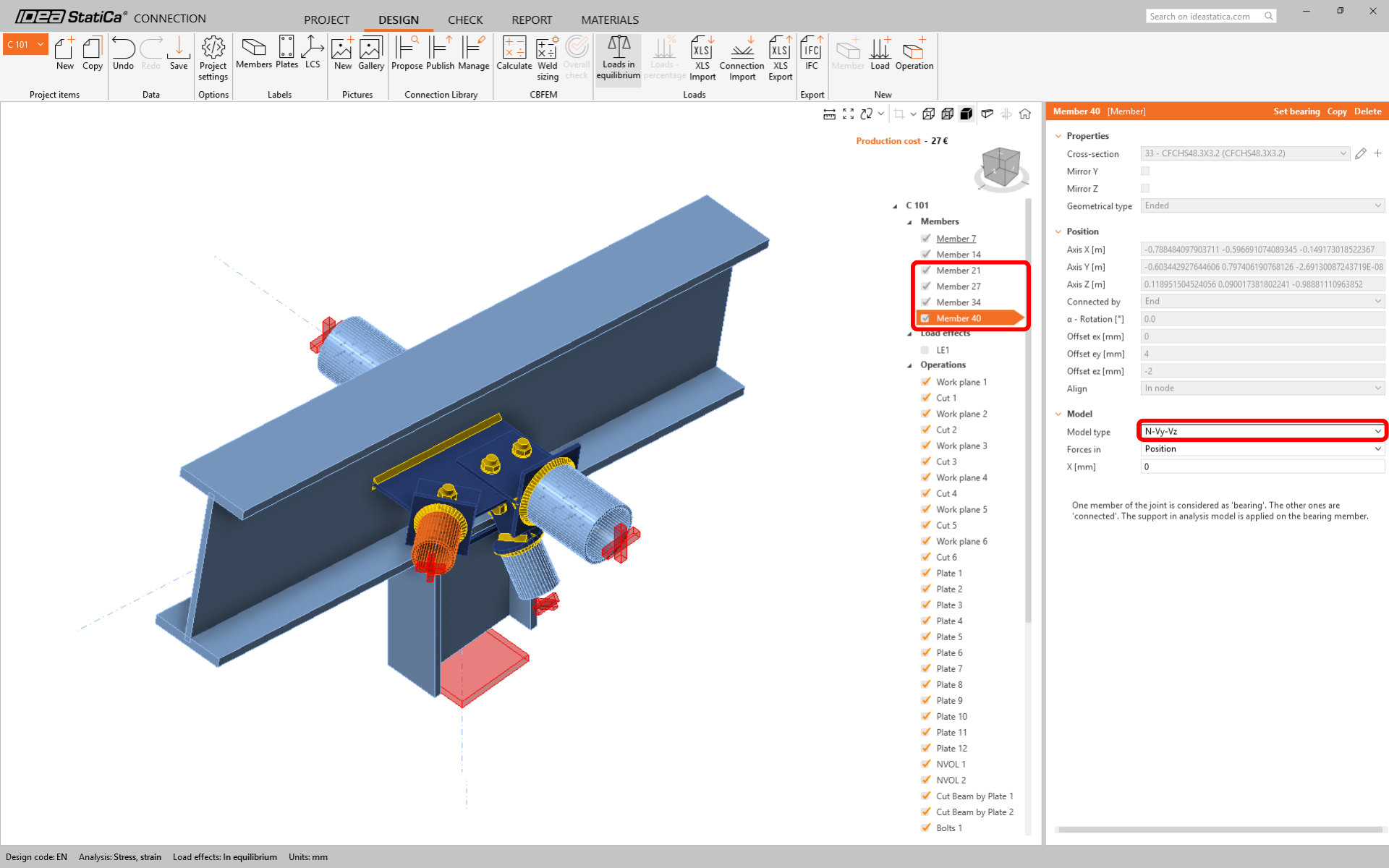 • Then select all the connection components (bolts, welds, plates, etc.) by dragging the mouse from the right-top to the left-bottom corner and confirm with the spacebar.