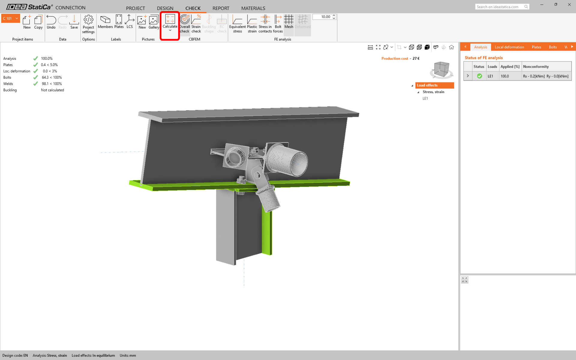 Now run a code-check using the Calculate icon in the CBFEM panel from the top ribbon.