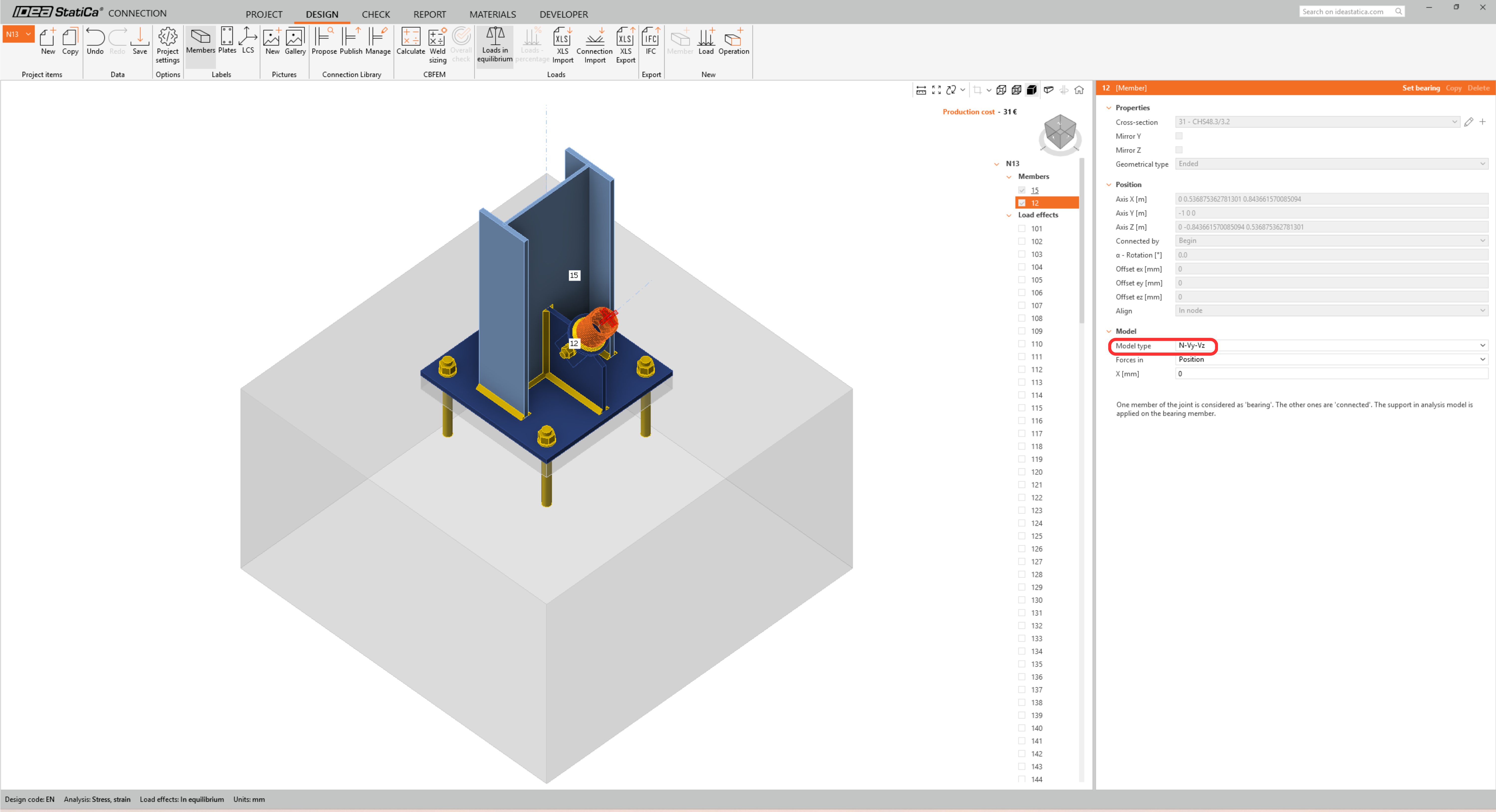 In Member 12, change Model type to N-Vy-Vz