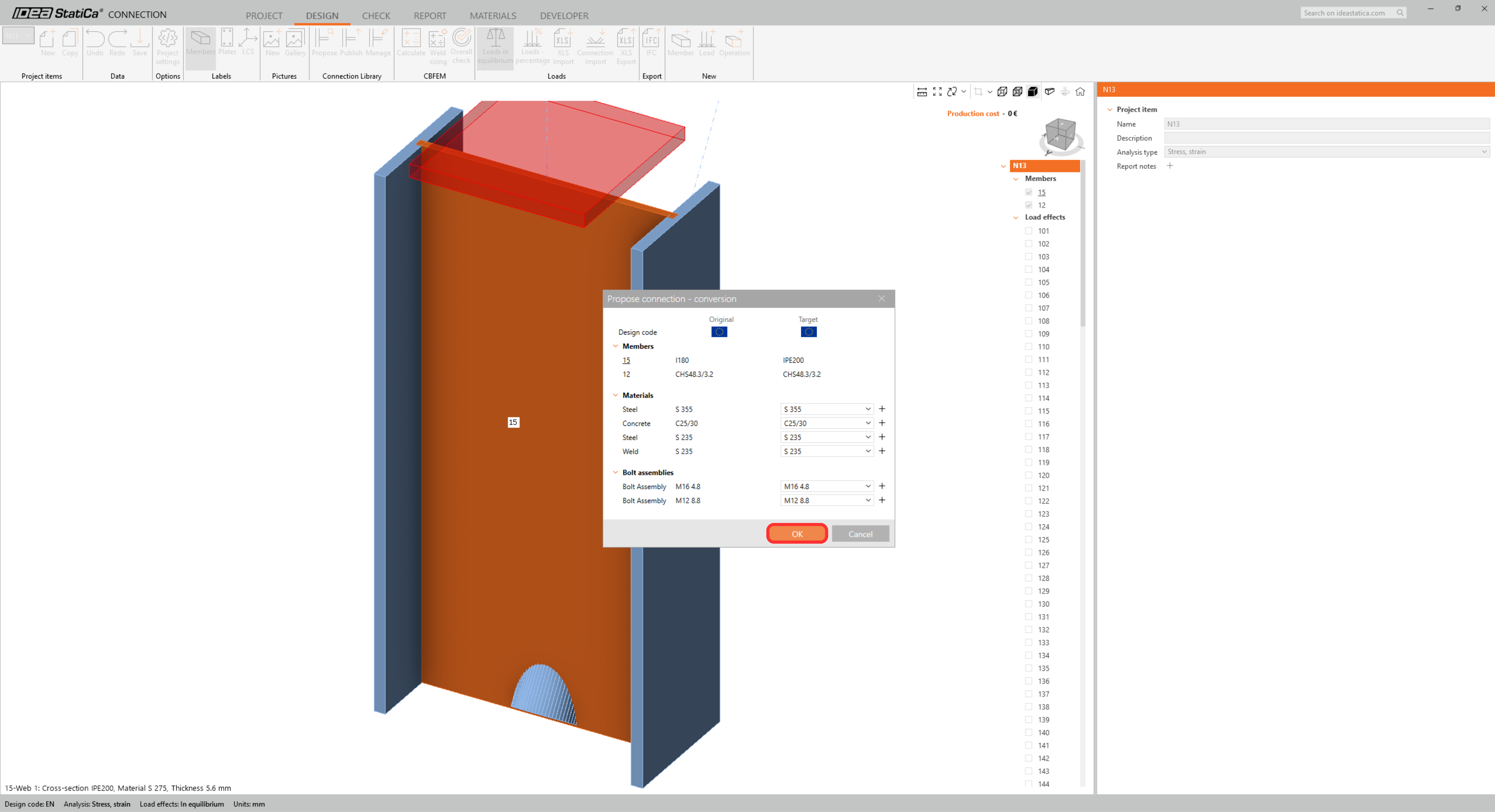 Click on Open to start designing, code-checking, and reporting. The imported connection is opened in the IDEA StatiCa Connection application.