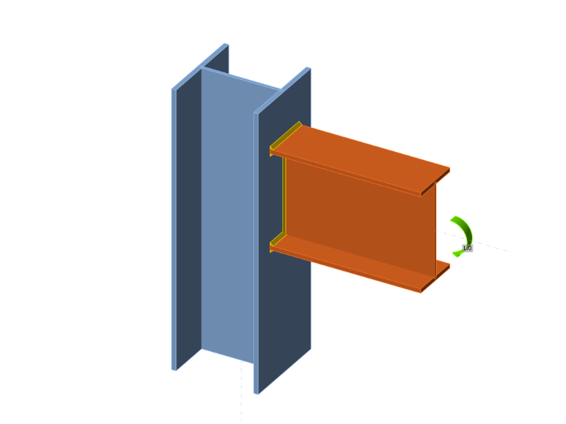 An open section beam IPE 400 is welded to a column HEB 300 in the example. Beam flanges are connected to the column flange with welds with the throat thickness of 9 mm. The beam web is connected with welds with the throat thickness of 5 mm. Plastic stress distribution is considered in welds. The material of the beam and column is S235. The design resistance is limited by the components column panel in shear and column panel in transverse compression . The calculated stiffness coefficients of the basic components, initial stiffness, stiffness by design resistance, and rotation of the beam are summarised in Tab. 10.1.1.