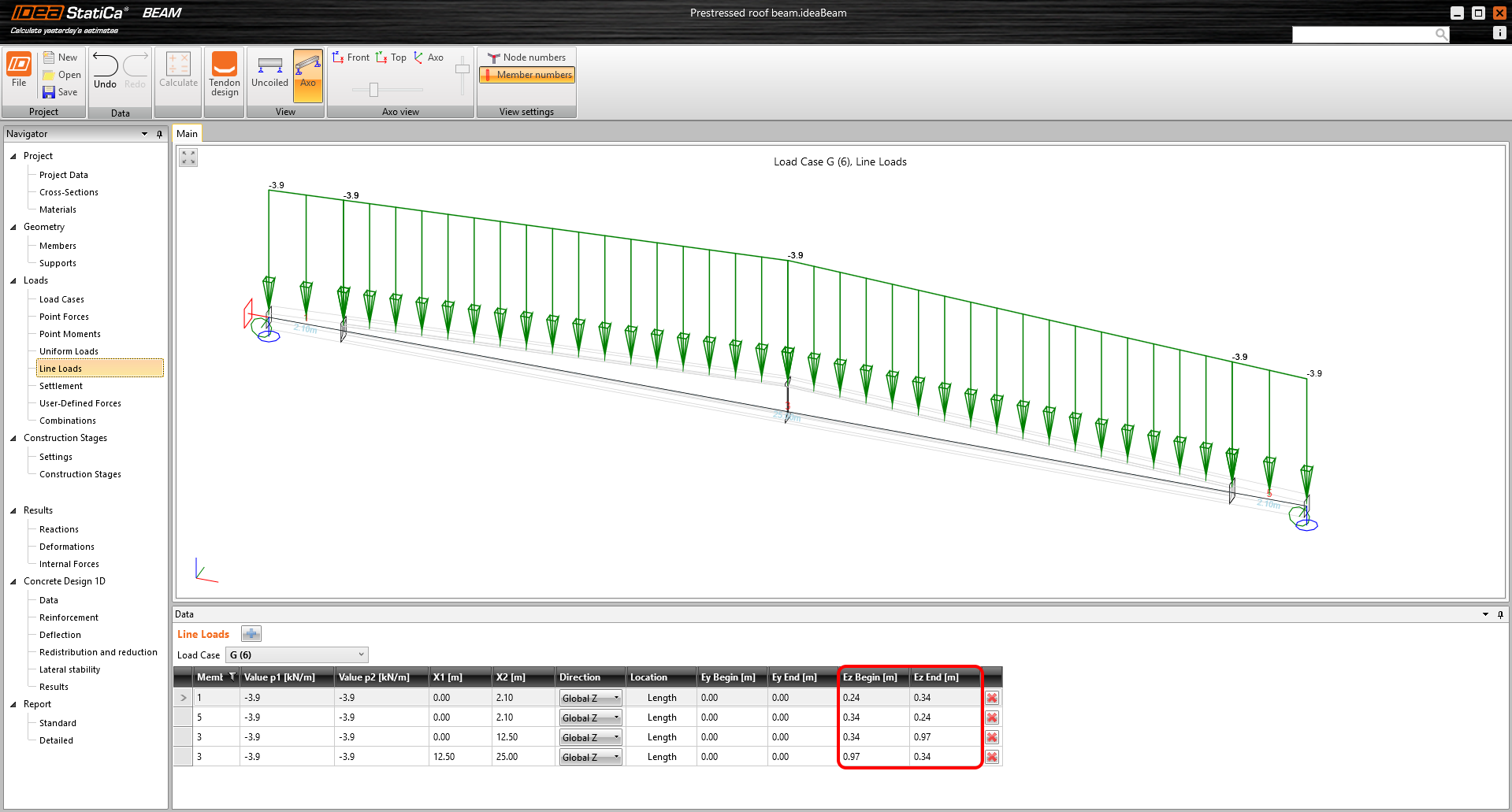 The tension is applied to the prestressing strands and tendons with a value calculated from the TDA (Time Dependent Analysis), according to the age specified for each design situation. However, keep in mind that the model for the lateral stability calculation and the model for the basic calculations in the IDEA StatiCa Beam application are different, so there may be slight differences in the calculated internal forces.