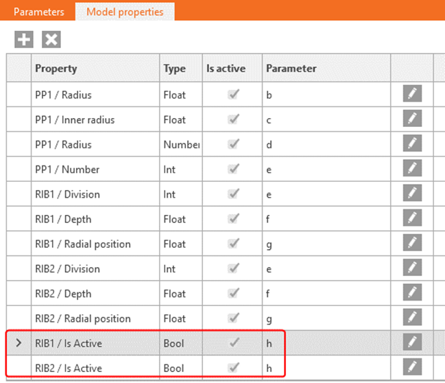 Link this parameter to model property RIB1 / Is Active and RIB2 / Is Active: