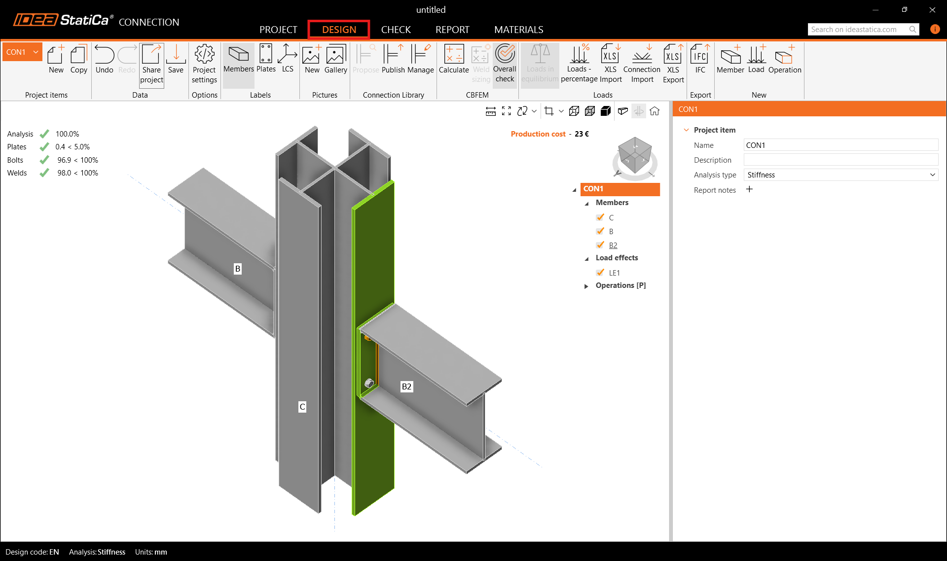 Go back to the tab Design to optimize the connection to achieve rigid connection.