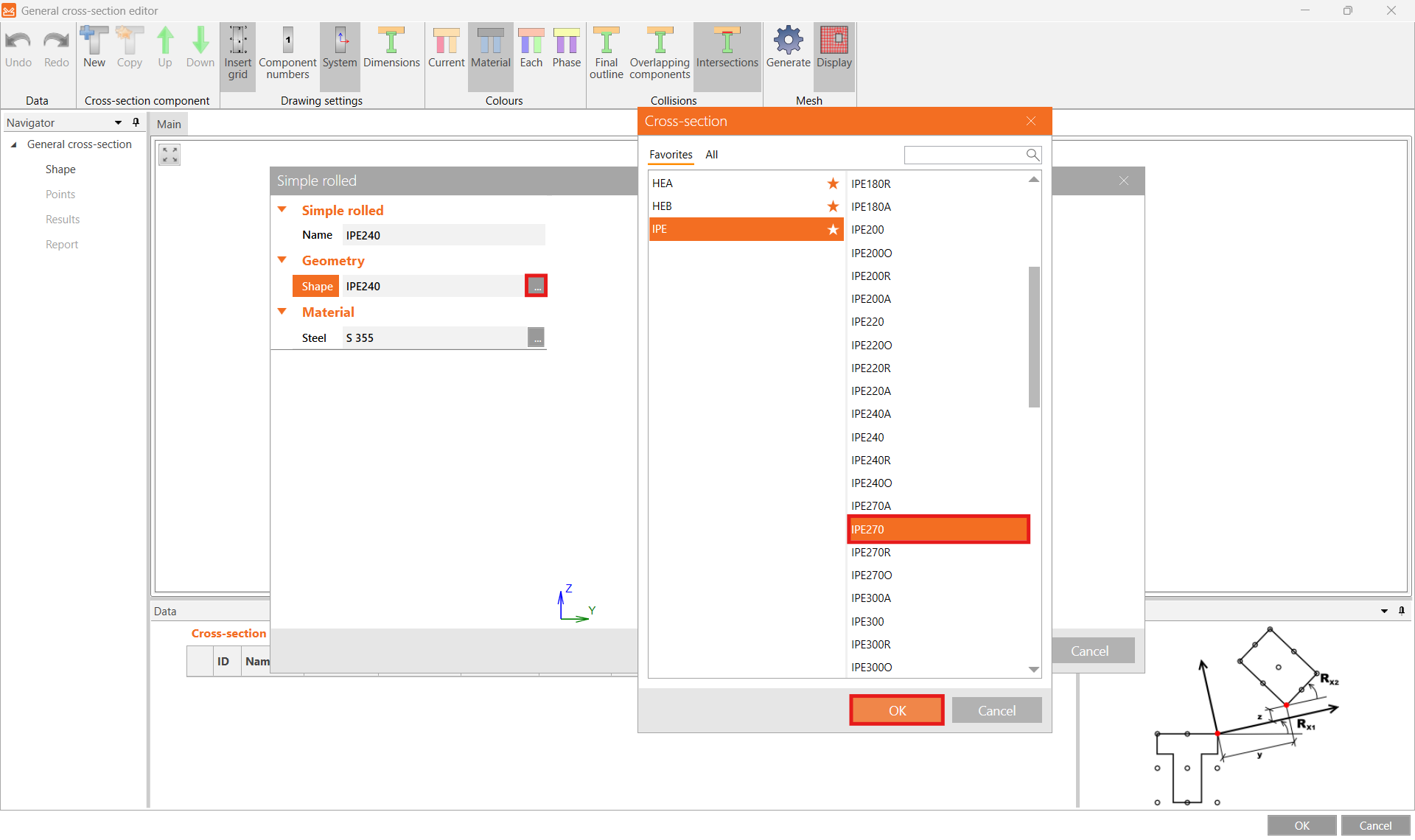 For the Shape select IPE270 from the cross-section library and input 120 mm for the Height and confirm OK.