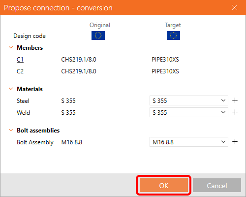 Open the library and select the PIPE310XS cross-section. Confirm with OK.