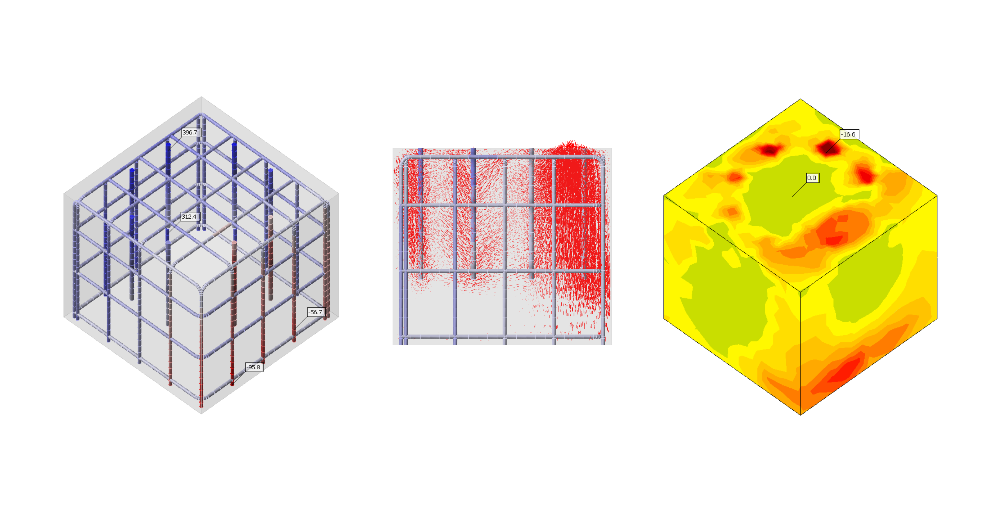 Engineers can then run the analysis and see how the reinforcement can help to prevent concrete cone breakout and concrete edge breakout in anchor design. IDEA StatiCa also provides a clear 3D stress visualization to help engineers understand how the stress flows from the anchor to concrete, reinforcement and support.